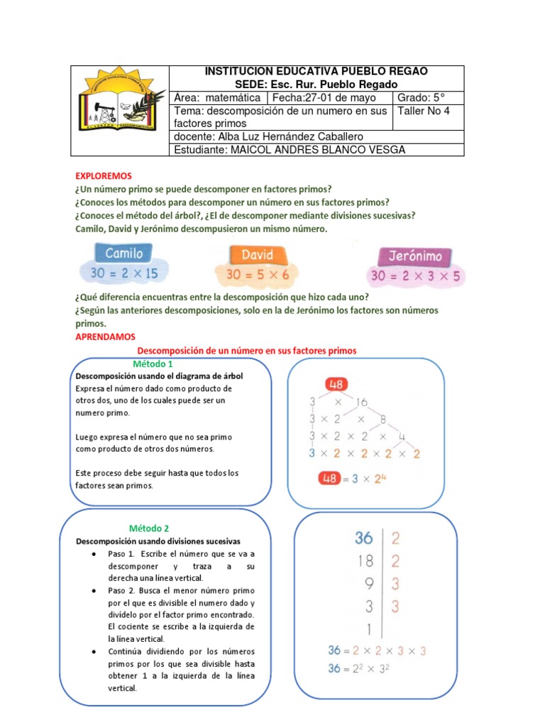 Ejercicio De Descomposicion En Factores Primos En Pdf Online